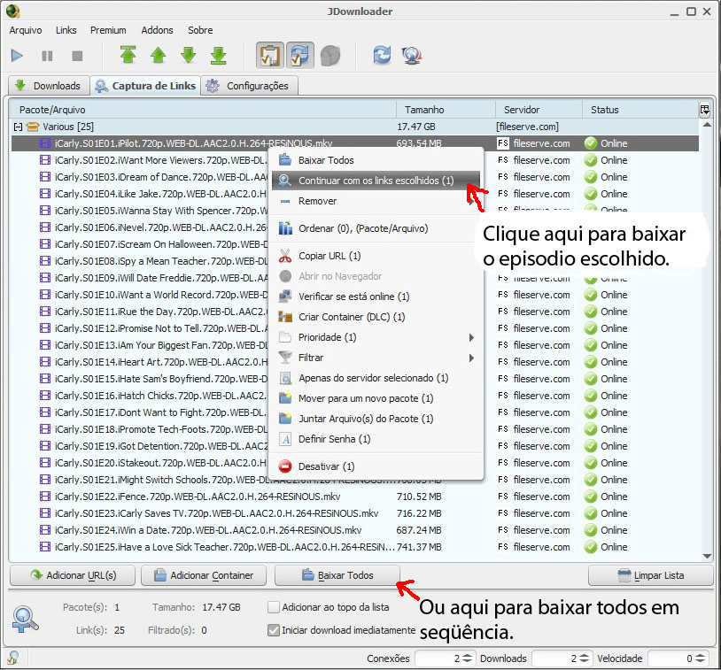 clique com o botão direito do mouse sobre o episodio que você quer baixar